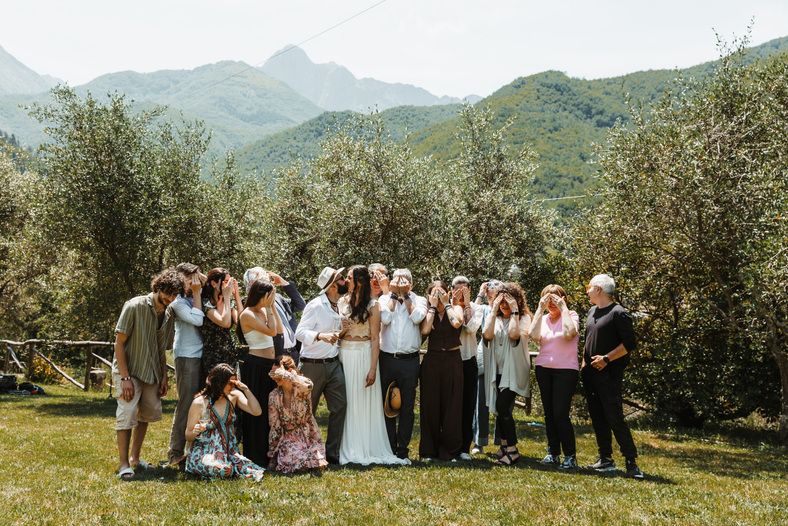 Daarna was er alle tijd voor een uitgebreide fotosessie met het bruidspaar. In de bergen van Toscane, tussen de olijfbomen. Of ik dat leuk vond? Ehh… YES 😄 Omdat het landgoed al zo mooi was, hoefden we niet ver weg en bleef alles relaxed. Er was nog tijd voor groepsfoto’s en daarna voor een siësta voor de gasten en een rustmoment voor het bruidspaar zelf.